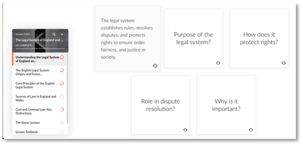 Innovative and holistic user interface, including nano-lectures, interactive online lessons, flashcards and much more.